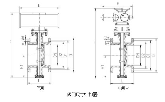 閥門的結構圖與連接安裝尺寸表