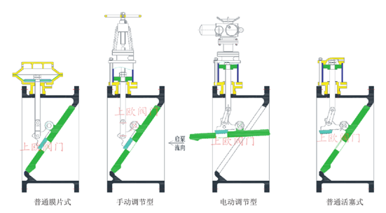 主閥結構形式 | 控制腔形式 | 控制腔位置 | 閥板運行形式 | 密封形式 | 泄壓形式 | |
