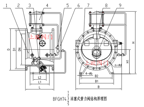 鑄鋼材質活塞式手動調節型法蘭連接管力閥注:基本型采用膜片式結構;污水型推薦使用膜片式結構,調節型謫選用活塞式結構。